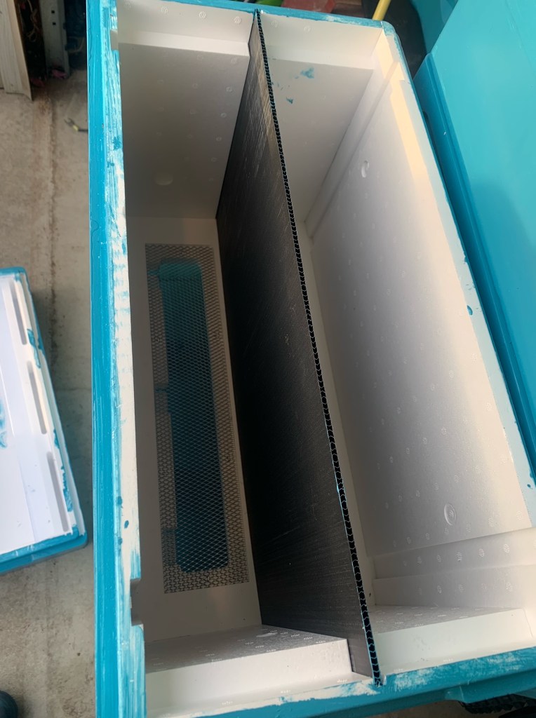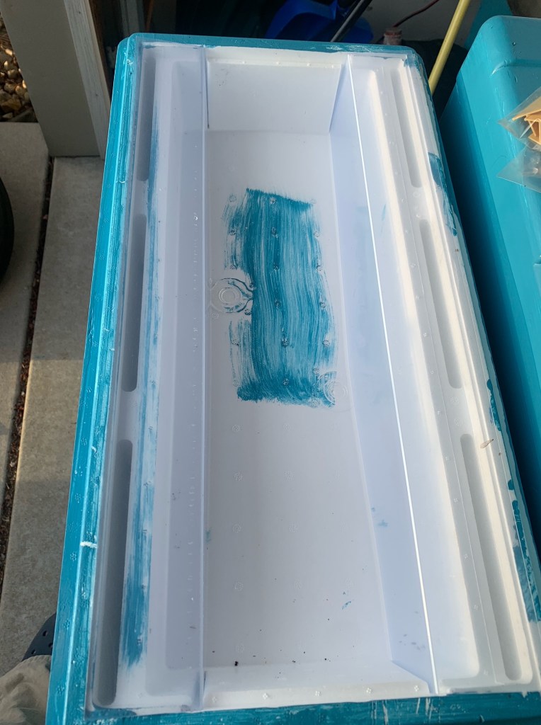 Here’s a nice picture of the divider feeder. They have nice plastic pieces to help keep the girls from drowning. The feeders also have removable plugs that should allow bees access to dry feed overwinter.